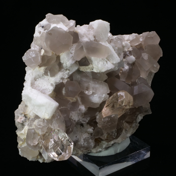 Two crystals of Topaz perfectly formed in the color champagne, associated with milky Smoky Quartz and crystals of pristine white Microcline that bring light to the piece.14 x 12,60 x 6,20 cmReference : 3482