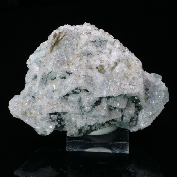 Intense dark green fluorite cubes covered almost entirely with shiny and well formed quartz, all sprinkled with pyrite that bring light to the specimen.12,90 x 8,60 x 5,70 cmReference : 3485
