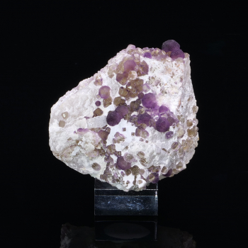 Well-formed Violet Fluorite cubes nestled in the heart of white and shiny quartz crystals. Specimen from the Yaogangxian mine in China.9 x 8,30 x 6,50 cmReference : 3523