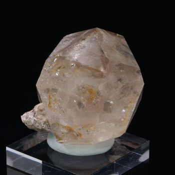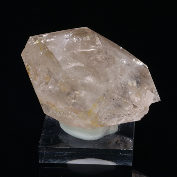 Yellow Fluorite crystal covered by clear and shiny Quartz from the El Hammam mine in Morocco.11,90 x 10,20 x 7,80 cmReference : 3525
