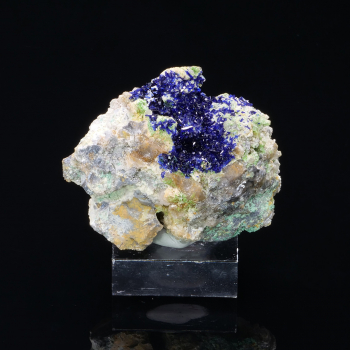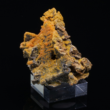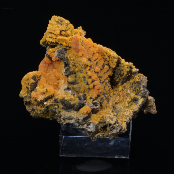 Mimetite in spheres of intense orange color on Descloizite crystals that form like black fir trees. Very beautiful specimen from Iran.5,50 x 5,10 x 4,60 cmReference : 3352