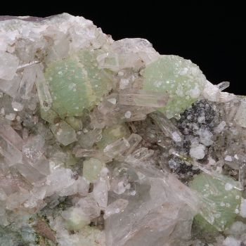 Well formed Analcime crystals on green Prehnite balls and Quartz from Erongo in Namibia.8,50 x 6 x 4,50 cmReference : 3353