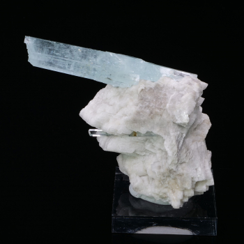 Very beautiful blue Aquamarine crystal on Albite well crystallized and brilliant white. There is also a second crystal of Aquamarine, smaller, but very well crystallized in the center.10 x 6,30 x 5,30 cmReference : 3359