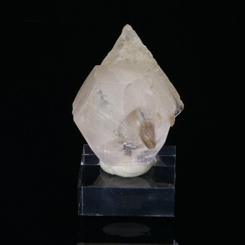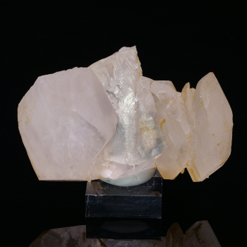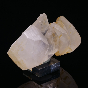 Colorless Calcite Crystal, glossy on a second generation of light yellow Calcite. This specimen from the Nikolaevskiy Mine in Russia has pretty streaks on the crystal, and very pure on the sides. Beautiful quality of crystallization.4,20 x 3,50 x 2,70 cmReference : 3423