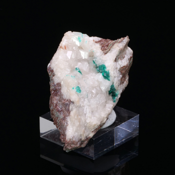 Large crystals of intense dark green and glossy Dioptase associated with white Calcite that offers a beautiful color contrast. Part from the Van der Plas mine in Namibia.7,40 x 4,70 x 4 cmReference : 3416