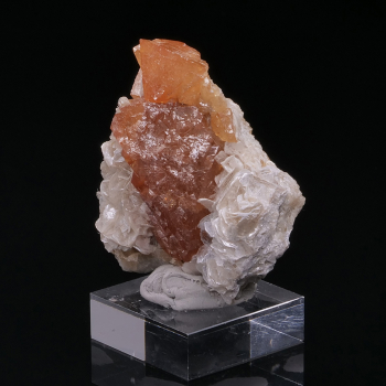 Large well formed Scheelite crystals of pronounced orange color surrounded by Muscovite forming like petals.5,40 x 4,40 x 2,60 cmReference : 3018