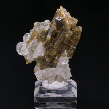 Double-sided specimen, one with finished and biterminated Epidote crystals associated with Stilbite, the other covered with almost white Stilbite crystals. The whole is highlighted by its custom engraved base.10,60 x 8,40 x 3,70 cmReference : 3045