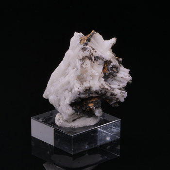 Large crystal of Scheelite complete on petals of Muscovite that bring shine. Piece highlighted thanks to its custom base.4 x 3,30 x 3,10 cmReference : 2829