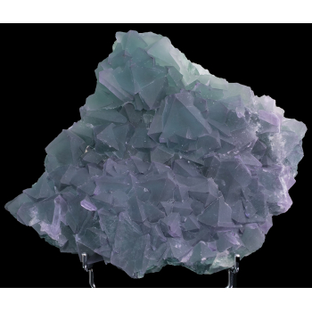 Cluster of purple Fluorite cubes on the tip of the piece, with two cubes in the center, on Quartz matrix. Specimen from the La Viesca mine in Spain.11,70 8 x 4,50 cmReference : 2759