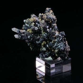 This specimen has a multitude of small well crystallized rosettes of Hematite, very fine petals that give this beautiful shine, associated with transparent Quartz and very bright yellow Mimetite also.5,90 x 3,80 x 3 cmReference : 2107