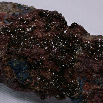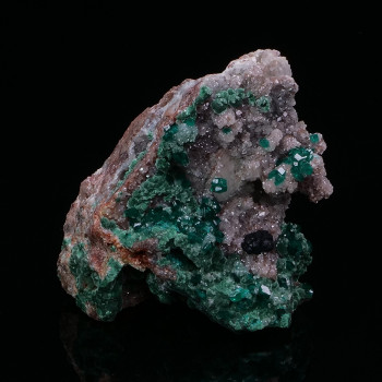 Superb small cabinet with intense green dioptase crystals associated with nipple goethite, all on malachite and quartz that brings even more shine to the piece.5,30 x 4,40 x 2,60 cmReference : 1167
