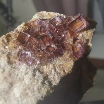 Octahedra violet and green Fluorite covered with a thin layer of quartz. Longest edge 4 cm. Piece that thirty years and that is not from recent discoveries!22 x 14,5 x 8 cm0004-SMCLS