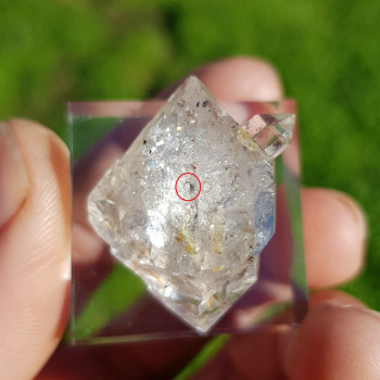 Quartz hyaline window with some Boulangerite inclusions and a moving (gas bubble) libellus.2,5 x 1,5 x 3 cm0069-SPAA