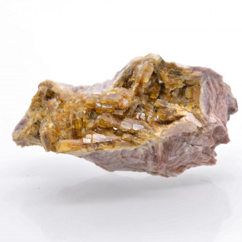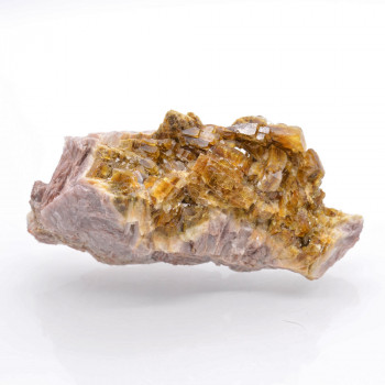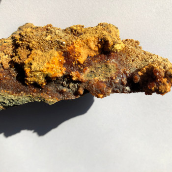 Saghand Yaza, Iran. Specimen 9 x 4 x 3 cm partly covered with orange crystals about 1mm, a rare iron hydroxy-sulphate. Specimen collected by Pierre and Nelly Bariand. Reference : 00118