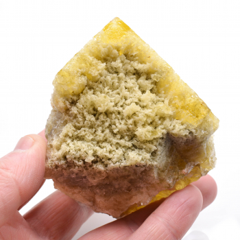 Magnificent small Fluorite, composed of beautiful macles. The crystal growth markers on the faces can be seen very well. The colours are sublime, varying from Violet to yellow by transparency without forgetting White. Some touches of Hematite are also apparent. An old piece from the early 1970s....
