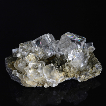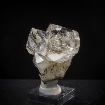 Superb group of 3 Quartz laid on Calcite crystals. also observed microscopically Pyrite ball. A miniature superb.3 x 3 x 2,3 cmReference : 0705
