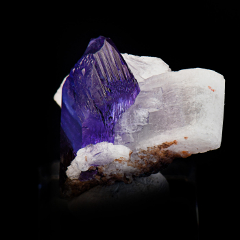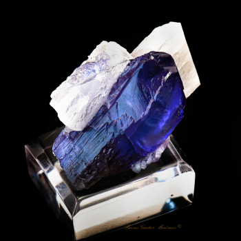 Tanzanite , variété de Zoisite chauffée, Trémolite Size: 2.5 x 2.2 cm Loc: Merelani Hills, Lelatema Mts, Simanjiro Dist., Manyara Region, Tanzanie Trés beau cristal de Tanzanite associé avec des cristaux de Trémolite à l'aspect soyeux. Le cristal est parfait, de belles épitaxies sur les...