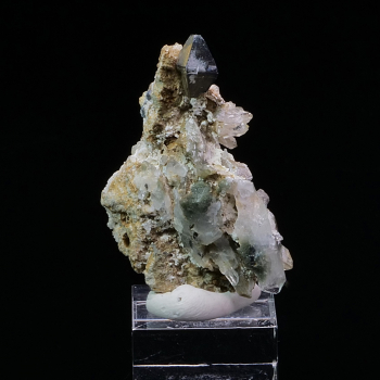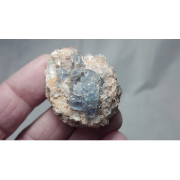 Small blue fluorite with small quartz from the Trébas mine, Tarn (rare occurrence) 4,2 x 3,2 cm. Reference : 0157-RuFo