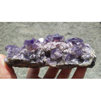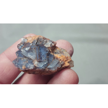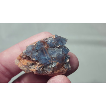Small ultramarine blue fluorite from Sauvagnat near Puy de Saint Gulmier. 4 X 2,7 x 2,6 cm. Reference : 0227