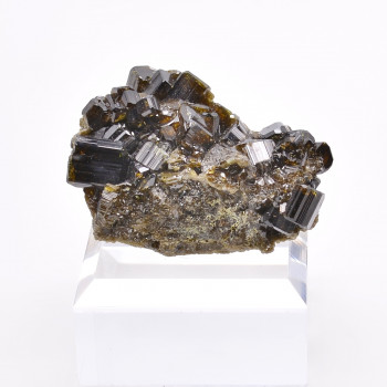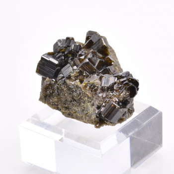 Association of prase quartz and dark green epidote, brilliant, from an unusual locality. 3,5 x 2,5 x 2 cm. Reference : 2588-LM2T