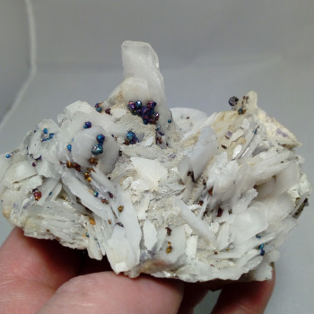 Chalcopyrite iridescent crystals placed on the crested barite / tabular.9,5 x 6,5 x 5 cmReference : 0119