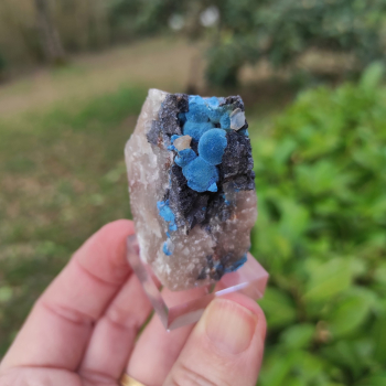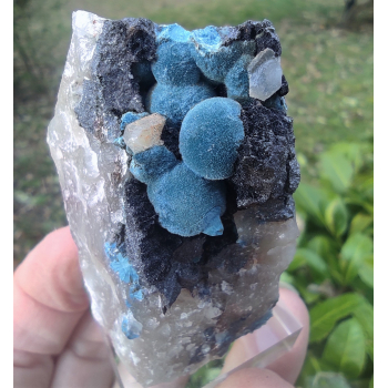 Botryoidal Shattuckite on Quartz, the color is deep blue. Kaokoland Mesopotamia mine, NAMIBIA4.8 x 4 x 3cmReference: 0343