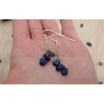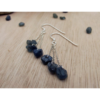Earrings in 925 Silver with rough French sapphire pearls. (Sapphire from Auvergne, 63 France) Very fine and delicate jewelry with deep colors. Each pair is a unique piece. Total length: 4.7cm The pearls measure between 5 and 9 mm Supplied in a gift box.