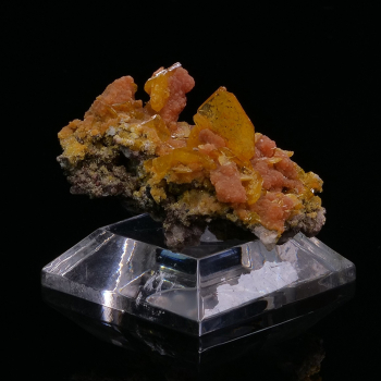 Balls Fluorite pink / purple laid on micro quartz and orthoclase pink. Some micro honey sphalerite sprinkle all.10 x 9 x 2 cmReference : 0048