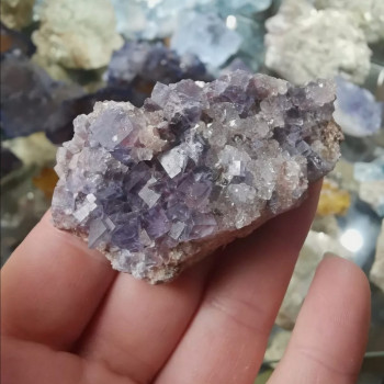 Beautiful plate of globular fluorite from the Rocs quarry in Buxières les Mines. The bowls measure up to 7mm. They are composed of the assembly of small yellowish and purple cubes. The quality of the crystals is good. the contrast as well. room of a good standard.12 * 8 * 3.5cm Reference:...