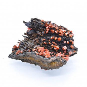 Small, very aesthetic piece! Consisting of a corroded Bournonite crystal, a barite pom-pom and a few spherical crystals.3,5 x 2 x 2 cm0016-SPAA