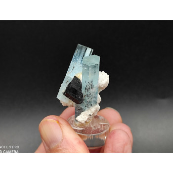 Two aquamarine crystals on orthoclase 3,5 x 3 x 2,5 cm0004-MDSA