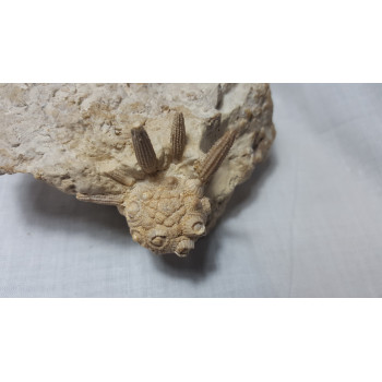Exceptional Balanocidaris marginata with complete apical apparatus and radioles from the Kimmeridgian near La Rochelle, Charente Maritime, France, diameter of the urchin alone 23 mm, from a collection. 10 cm. Reference : 0143-RuFo