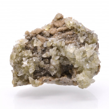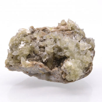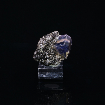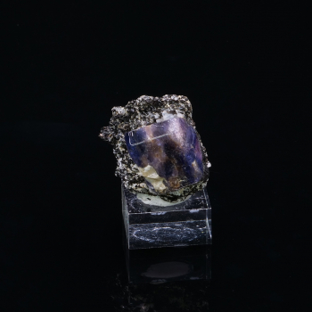Small yellow fluorite covered with pyrite, Burc mine, Alban, Tarn, uncommon. 3,7 x 3,7 x 3 cm. Reference : 0232