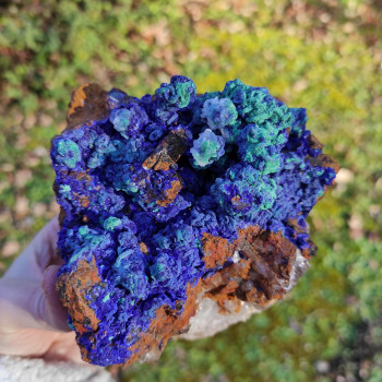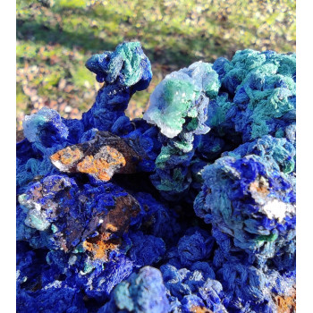 Typical quartz from this deposit, quartz crystals covered with iron oxide, azurite and malachite, beautiful color.11,5 x 11 x 8,5 cmReference : 0125