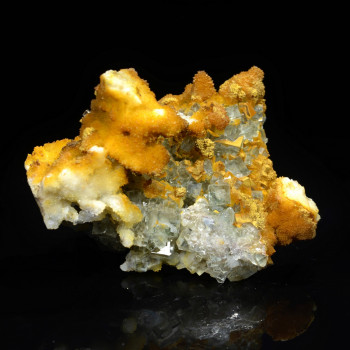 Swambo, Shaba, Democratic Republic of Congo. Specimen 2.8 x 2 x 1.5 cm partially covered on one side with yellow-orange microcrystals of soddyite, a urano-silicate. Radioactive mineral Reference : 00215