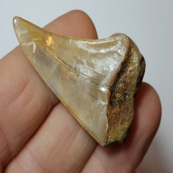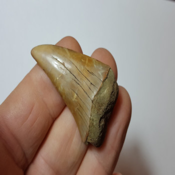 Cosmopolitodus escheri of the Miocene at Gourbesville, Manche (discovery of the 19th century). 4,8 cm. Reference : 0065-RuFo