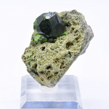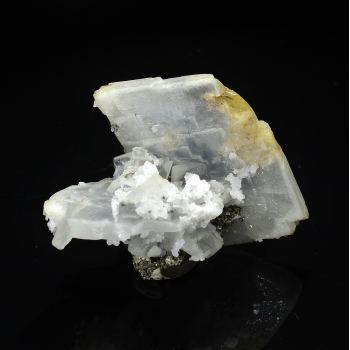 Big cube of fluorite of 11cm which comes from the Peyrebrune mine. The yellow color, the pyrite micro-inclusions and the purple border give the characteristic pinkish color. The surface of the cube is partially covered with bright microquartz. Despite some imperfections, this remains an uncommon...