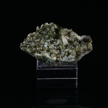 Association of prase quartz and dark green epidote, brilliant, from an unusual locality. 3,5 x 2,5 x 2 cm. Reference : 2588-LM2T