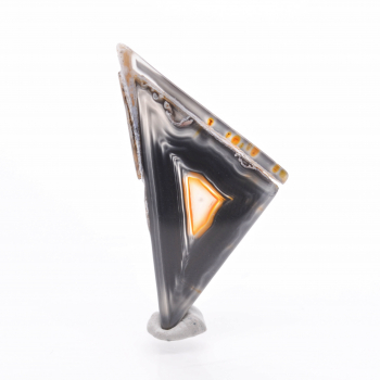 Native silver dendrites in a calcite matrix. A few bright-red proustite crystals are present on the back. As proustite is light-sensitive, this piece should be kept away from light. 7 x 5 x 3 cm. Reference : 3615-LM2T