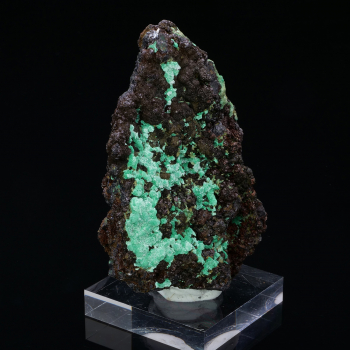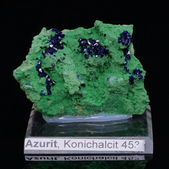 size: 4 x 3.5 x 2.2cmOrigin: Renéville, Djoué, Brazzaville, Rep. req. from CongoMost of the paragenese of the site is united in this rare and original quadruple association. A unique piece. Dioptase crystal length 16mmDimensions without the acrylic base, which is supplied...