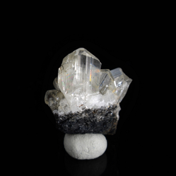 This beautiful macle of Pyrite rests on its pedestal composed of Cristal de Roche and small Pyrite octahedrons. This magnificent aerial specimen is just waiting to be placed next to other collector's items. Caution, brilliance and shine are the order of the day.Quality Pyrite sensational !!!...