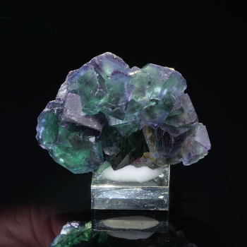 Fluorite cubes violet, color hue is due to the type of ghost, which is either in the periphery or a heart. Dusting Chalcopyrite, the largest crystal is 3 mm. Presence of barite. Room very bright!9 x 7 x 2 cm0003-SMCLS