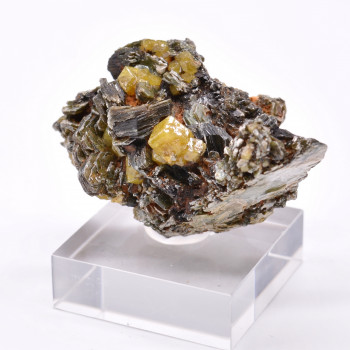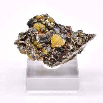 Calcite crystals with inclusion of goethite. Crystals are covered with ochre/clay and locally iridescent limonite.13,5 x 7,5 x 8,5 cm0025-SPAA