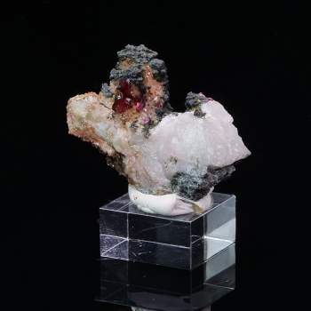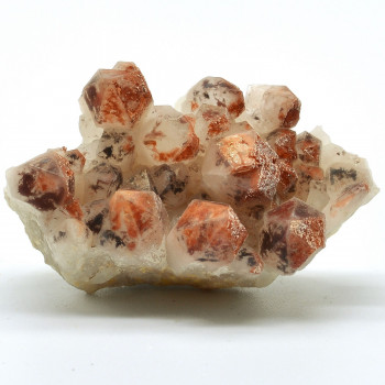 Bel assembly vanadinite translucent orange-red and brilliant white on baryta lamellae.7 x 4,5 x 3 cmReference : 0318