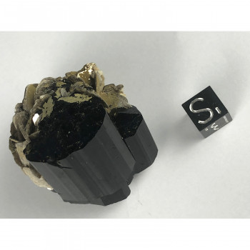 Skardu, Pakistan. Black tourmaline, schorlite variety with golden muscovite mica flakes. Specimen 4 x 3,8 x 2,5 cm Reference : 00224
