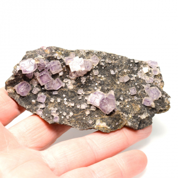 Combination of fluorite, blende, Pyrite and crystallized calcite on both sides, without base dimensions4,8 x3,2 cm0009-LCPF
