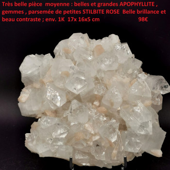 Beautiful average room, very attractive with beautiful bright APOPHYLLITE, and STILBITE17 x 16 x 15 cmReference : 0177