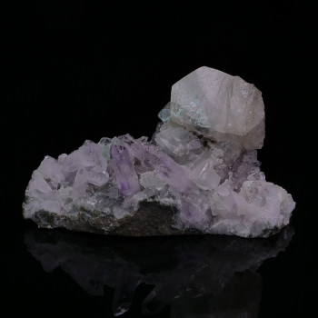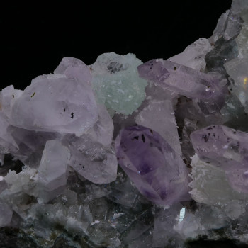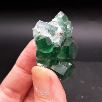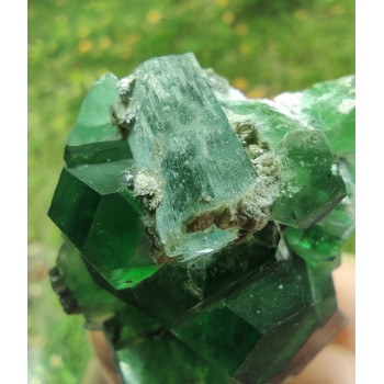 An uncommon association, an aquamarine crystal is encased between green fluorite crystals4 x 3 x 2 cmReference : 0276