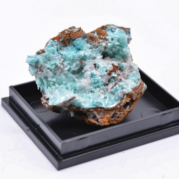 Aurichalcite on limonite, partially covered by a carbonate mineral of undetermined form (supposed hydrozincite).3,5 x 2,5 x 1,5 cm.Reference : 0953-LM2T