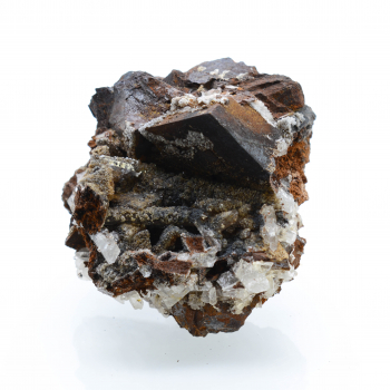 Fluorite transparent with a white cloud of petals siderite light brown and slightly iridescent. Superb miniature.4,5 x 2,9 x 2,5 cm0033-SMCLS